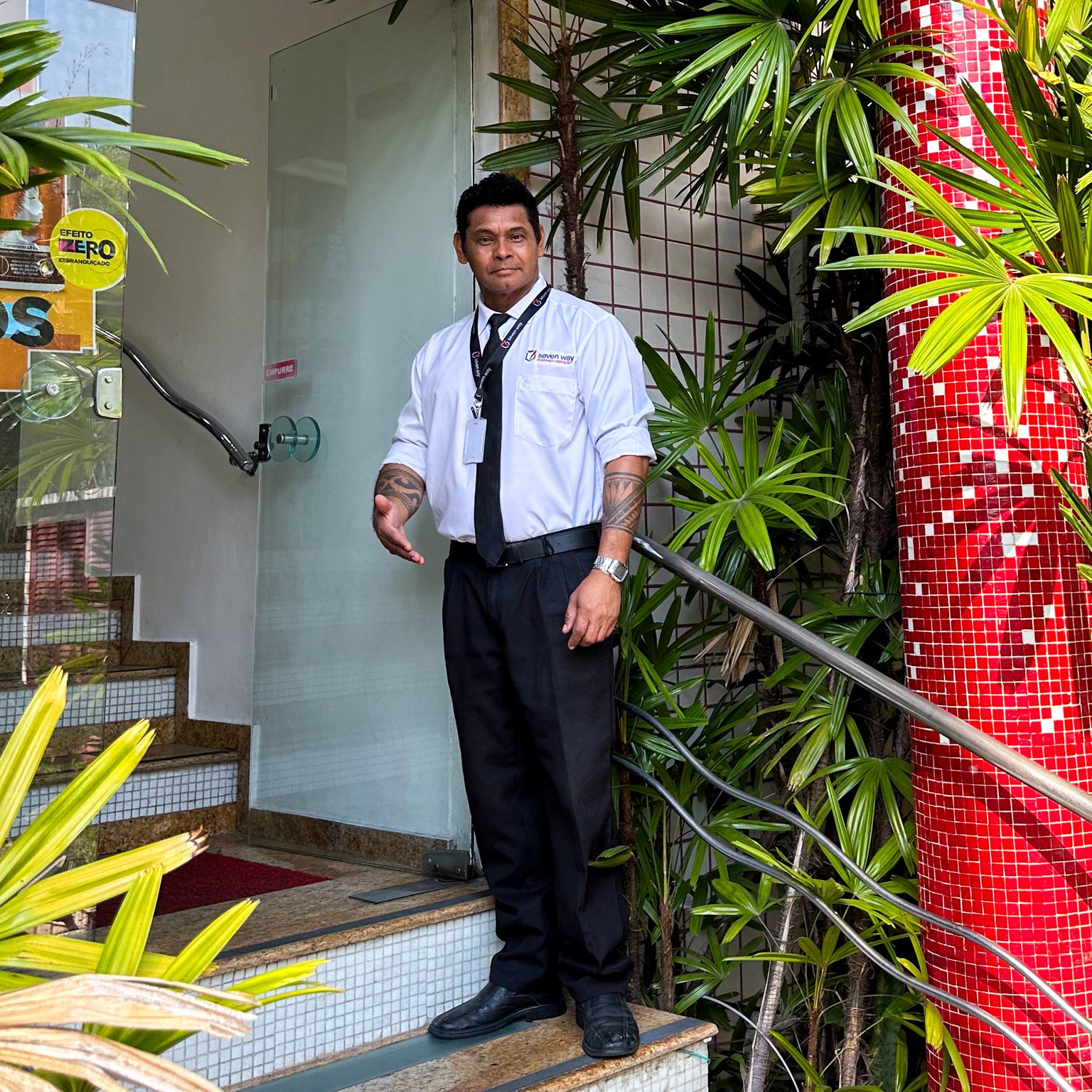 O serviço de portaria é o responsável pela primeira impressão que o empreendimento irá deixar, por isso a Seven Way conta com profissionais treinados e capacitados com foco no processo de identificação e controle de entrada de saída de pessoas autorizadas, visitantes, veículos, entregas, fornecedores e prestadores de servicos, sempre com atendimento humanizado. Atender bem, com cortesia, simpatia e diligência é uma das principais funções da nossa portaria. Para cumprir essa missão, temos nosso processo de qualidade e treinamento com os protocolos da função e com os requisitos de cada cliente.